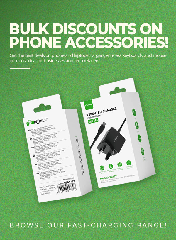 Buy wholesale laptop chargers, laptop power adapters, and charger cables from a trusted UK trade supplier. GSM Mobile provides high-quality brand-compatible and universal laptop chargers for retailers, repair centres, and refurbishing businesses nationwide. Our range is built for durability, wide compatibility, and consistent performance, with competitive wholesale pricing and reliable UK delivery to support strong margins and repeat sales.