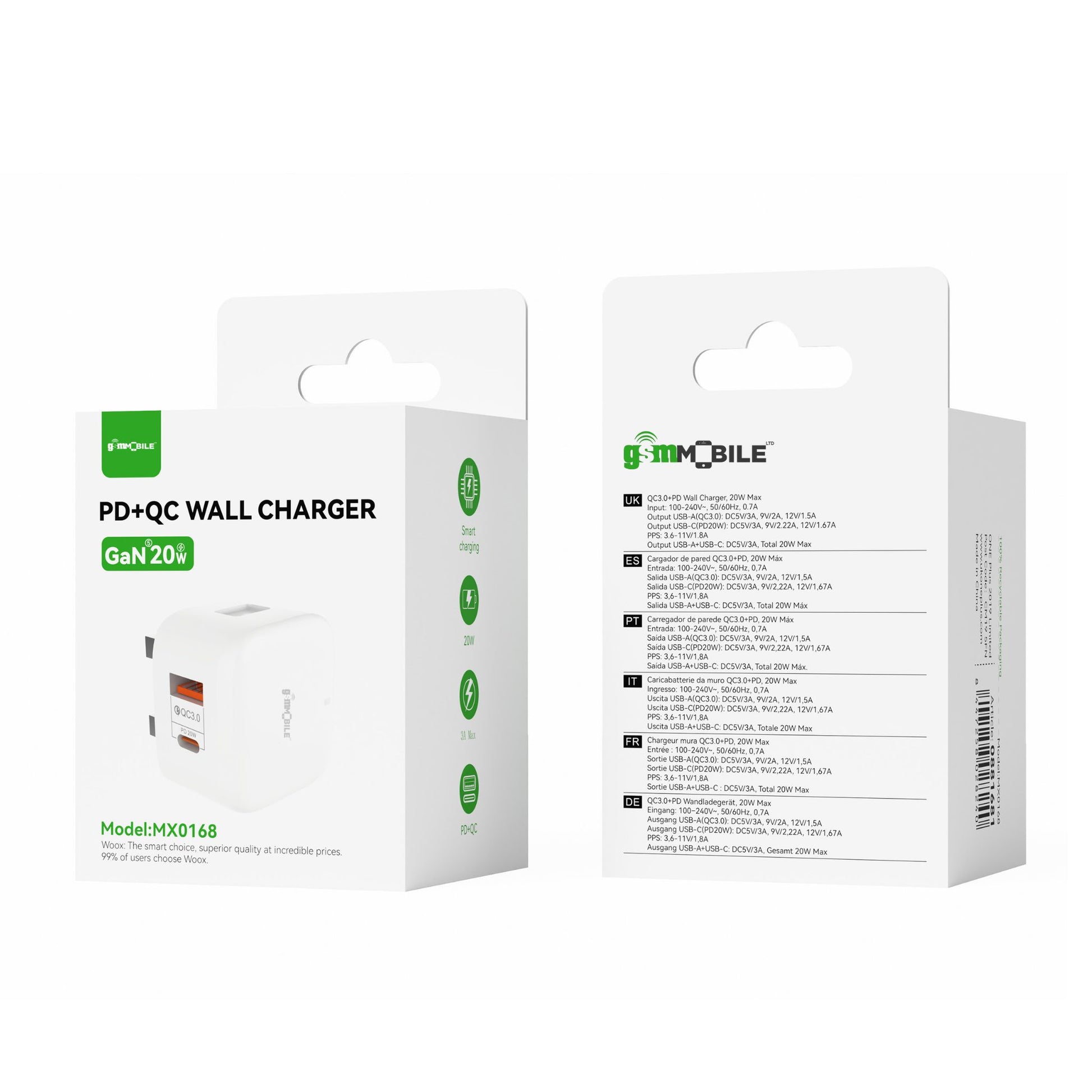 The MX0168 Dual PD Plug 20W PD + QC Wall Charger is a compact and reliable fast-charging solution built for users who need versatile, everyday power in a small footprint. With both USB-C Power Delivery and USB-A Quick Charge 3.0, it allows you to charge two devices at the same time while maintaining safe, efficient output.